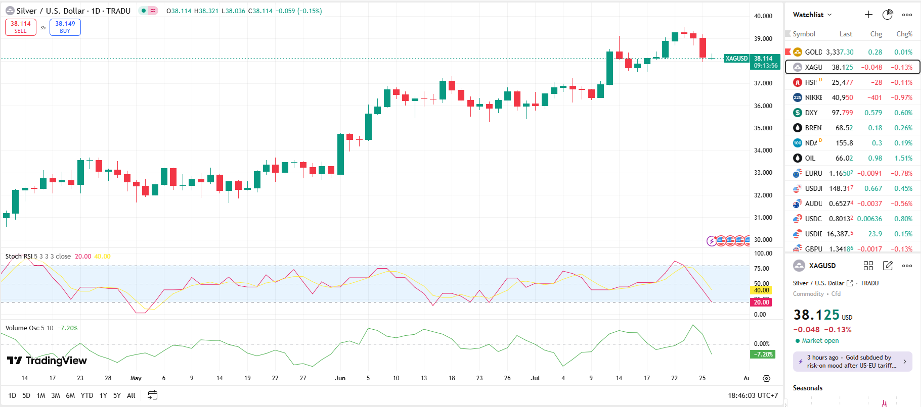 Harga Perak saat ini mengalami penurunan dari level tertinggi minggu lalu yang mencapai $39,53. Penurunan ini mencerminkan berkurangnya permintaan terhadap aset safe haven seiring dengan meningkatnya sentimen risiko di Pasar global. S&P 500 futures menunjukkan kenaikan signifikan, mencerminkan optimisme investor terhadap prospek ekonomi.
